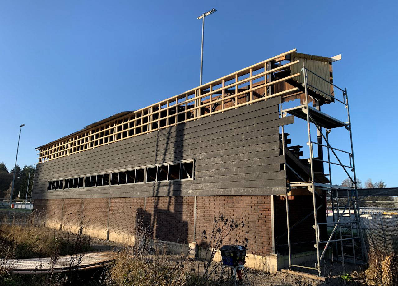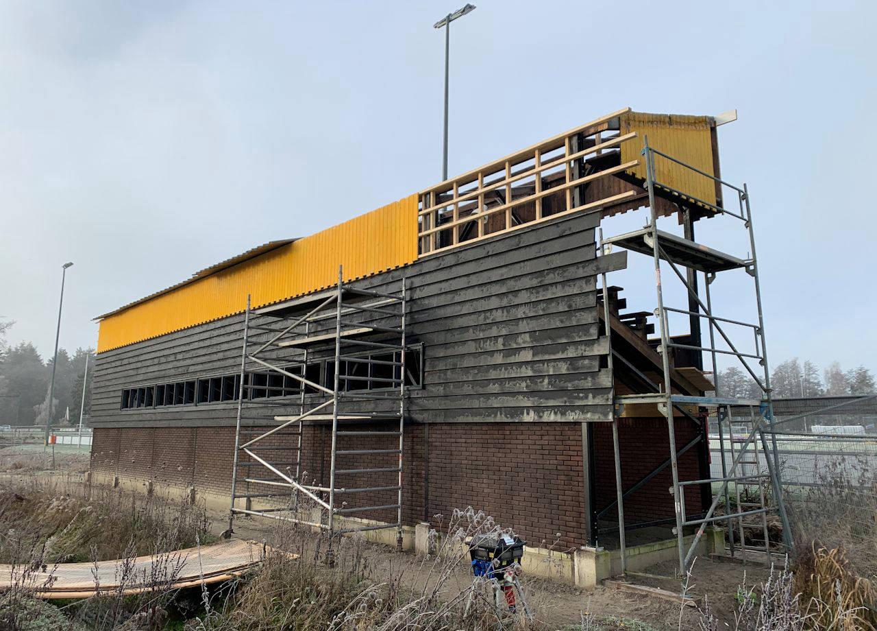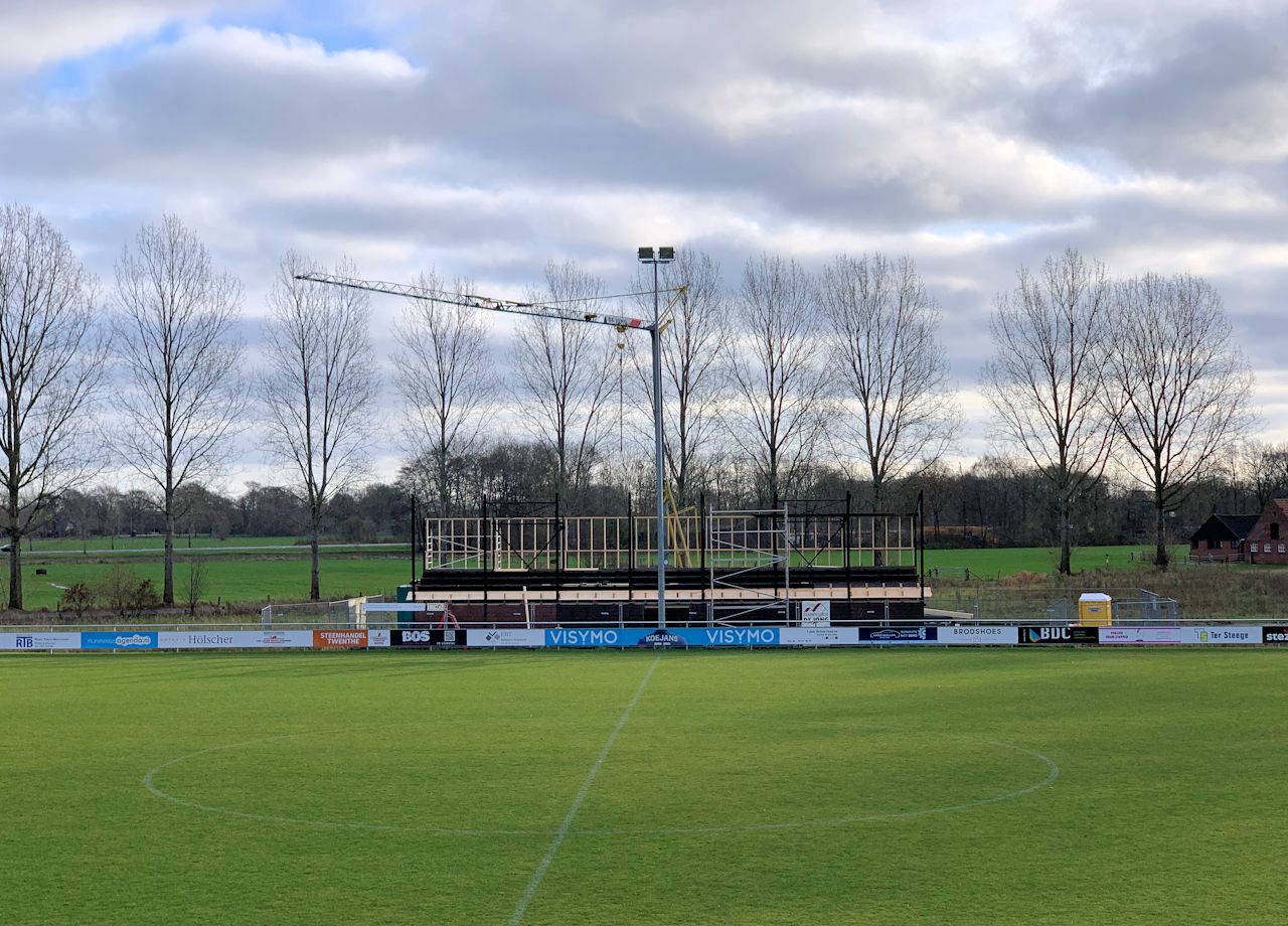 Om het 10-jarige bestaan te vieren, kan de tribune een cadeau zijn geweest van de heer J.H. ter Horst aan de vereniging. Uit het interview is gebleken dat de tribune gebouwd is door medewerkers van Ter Horst. Arbeid was destijds niet duur en de materialen waren beschikbaar.